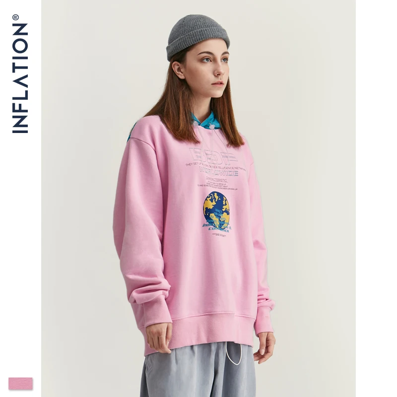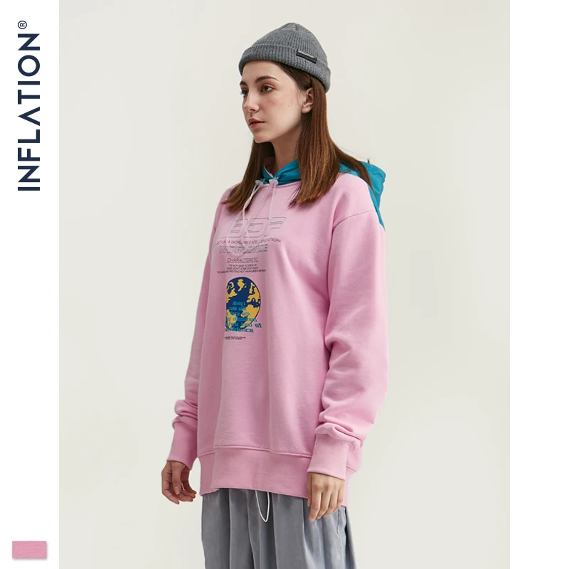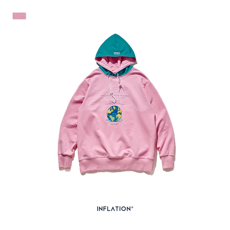 Мужская толстовка в стиле хип-хоп INFLATION, розовая хлопковая махровая толстовка с капюшоном, 9684W, осень 2020