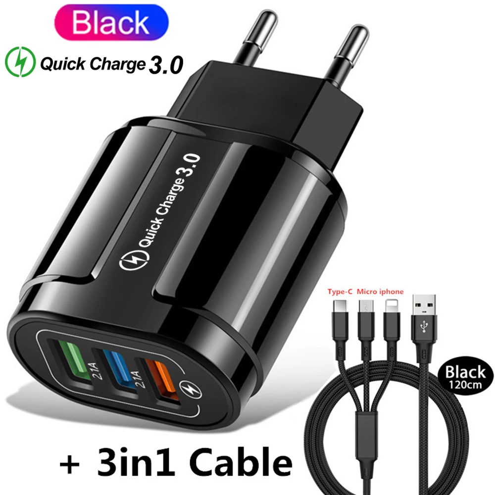 18 Вт Быстрая зарядка 3,0 USB зарядное устройство QC3.0 Быстрая зарядка мульти зарядное устройство для Samsung S10 Xiaomi Mi9 iPhone X iPad настенное зарядное устройство для телефона