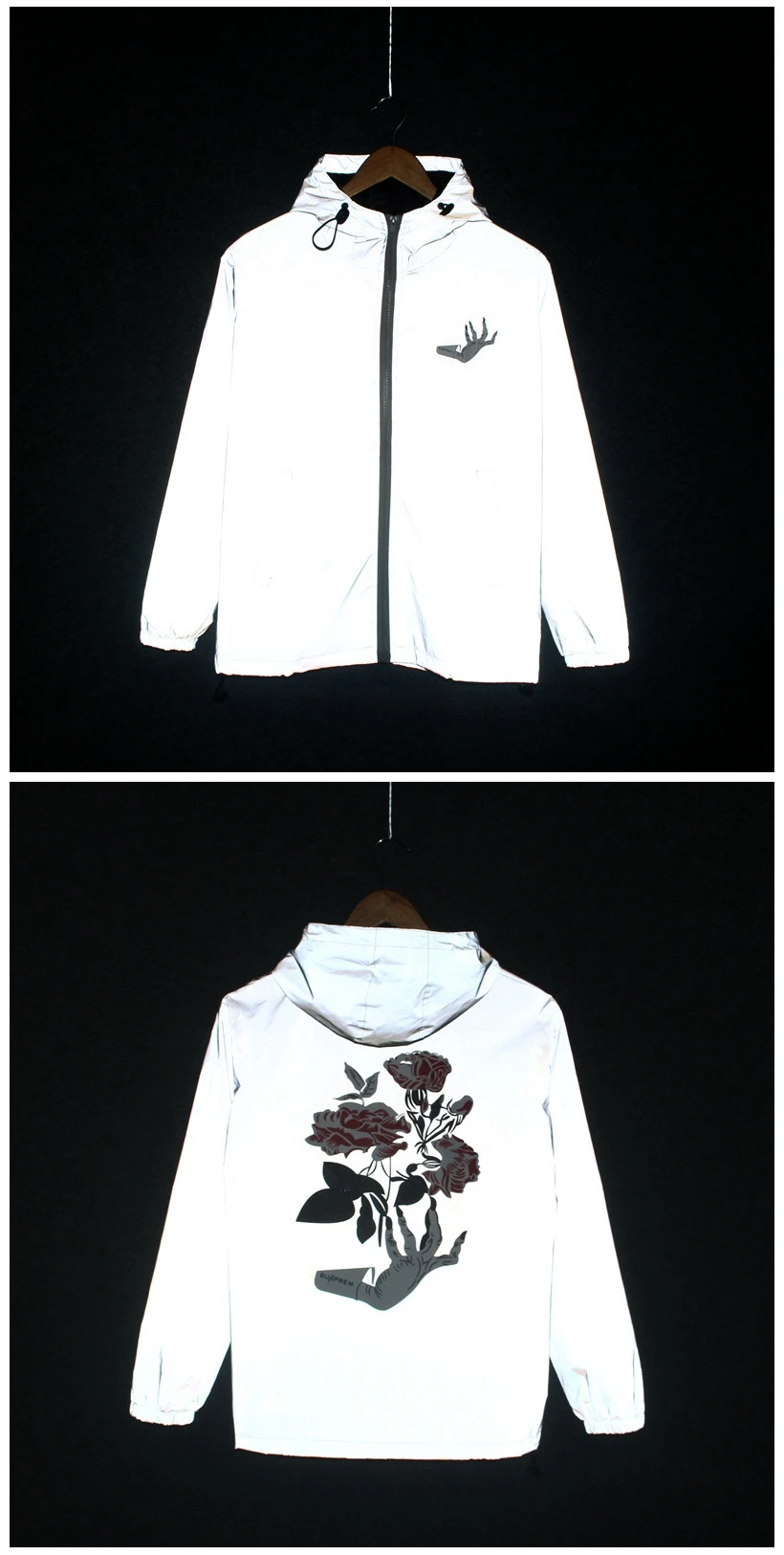 Светоотражающая куртка для женщинмужчин с капюшоном Харадзюку 3 м Светоотражающая куртка для девочек Женская пара пальто куртка Ночная уличная одежда для женщин