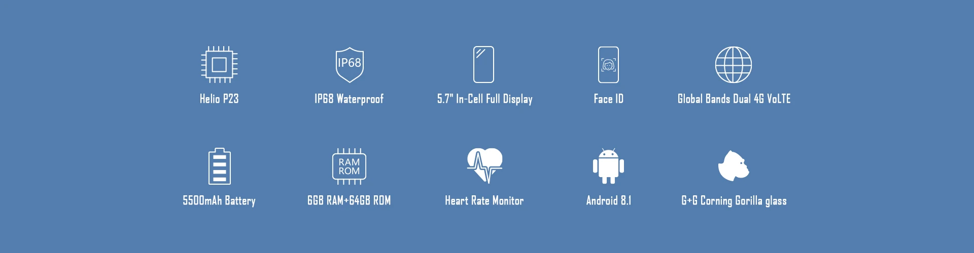 Смартфон с 5,7-дюймовым дисплеем, процессором ZOJI Z9, ОЗУ 6 ГБ, ПЗУ 64 ГБ, 5500 мАч, Android 8,1, 5500 мАч, 4G