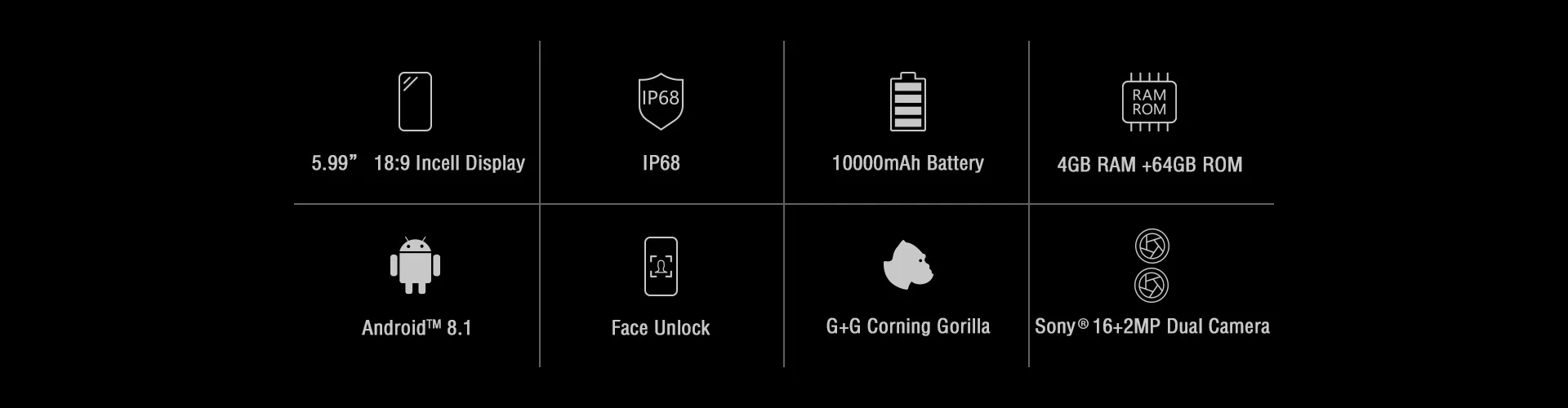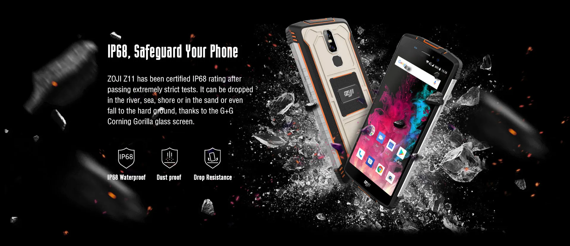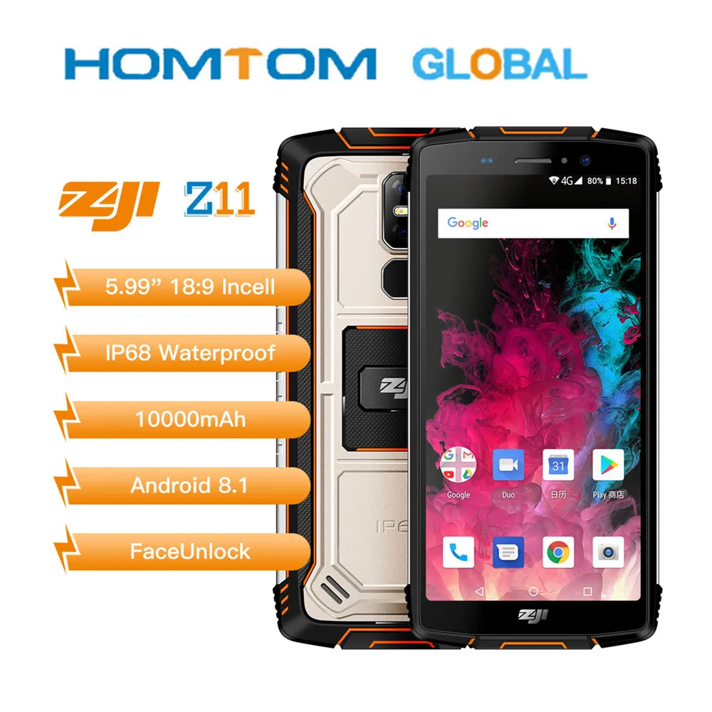 Оригинальный смартфон Zoji z11 Homtom IP68, экран мобильный телефон дюйма, Восьмиядерный процессор MTK6750T, 4 Гб 64 ГБ, 5,99 мАч, на базе Android 10000, функция распознавания лица, 8,1