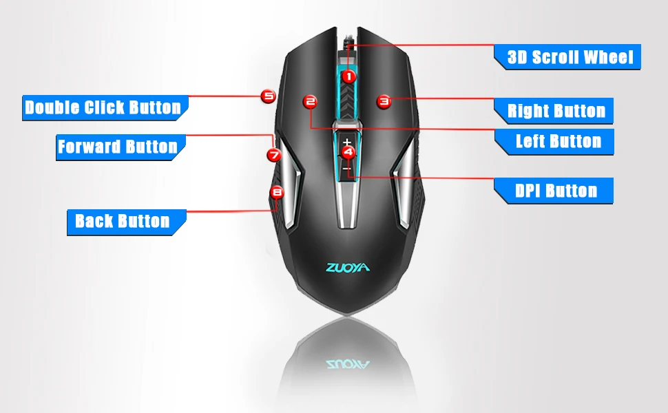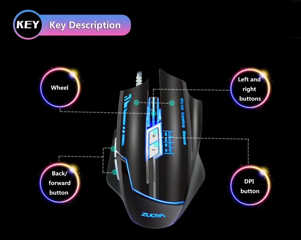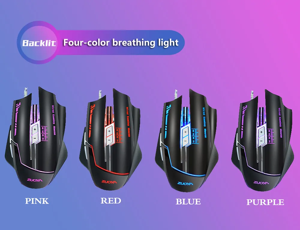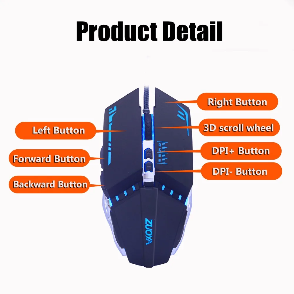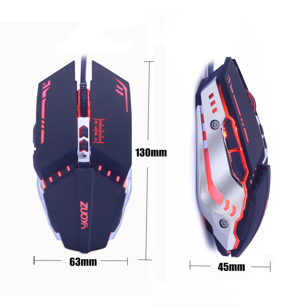 Игровая мышь ZUOYA, регулируемая, светодиодная, яркая, проводная, оптическая, USB