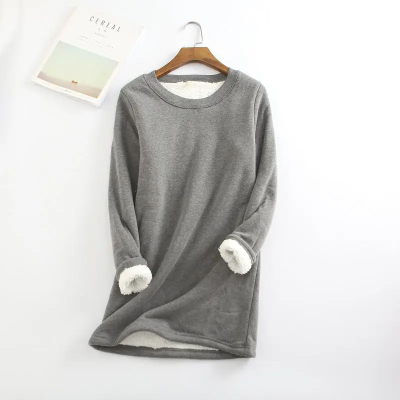 Термобелье женское, на флисе, с длинным рукавом и круглым вырезом