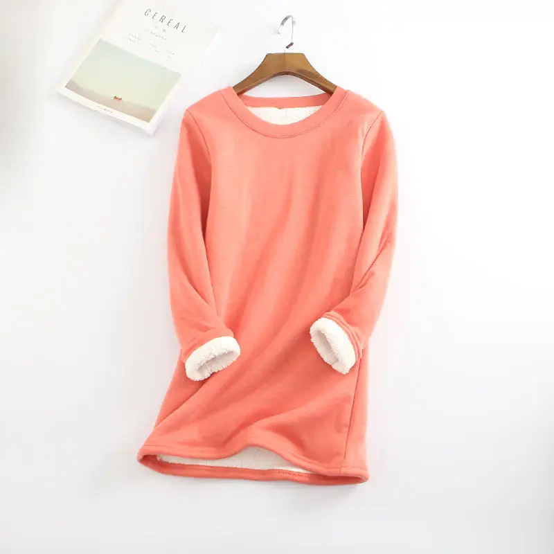 Женская теплая зимняя футболка с длинным рукавом и флисовой подкладкой