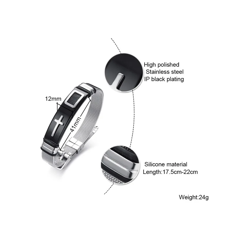 Мужской браслет из нержавеющей стали с сеткой, ширина 12 мм