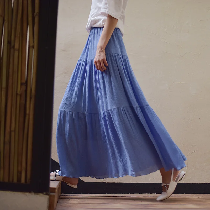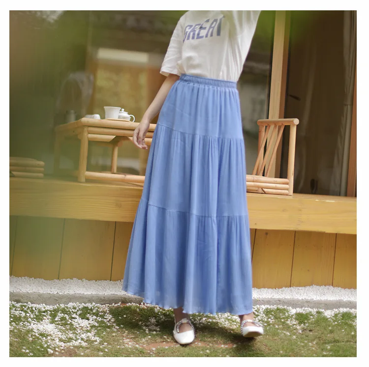 2021 летняя новая женская белая длинная юбка с высокой талией, тянущиеся хлопковые и льняные юбки Saia, Женская трапециевидная Юбка Faldas Jupe Femme