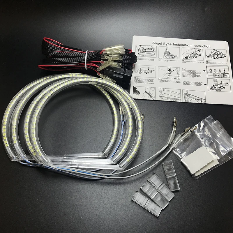 1, высокое качество SMD 3528 суперСВЕТОДИОДНЫЙ индикатор яркости 2, используется для фар автомобиля-маркер-ангельские глазки 3, всего 4 кольца или 2 кольца для ближнего и дальнего света; 4, агрессивный, но чистый и стильный светодиодный светильник. Идеально подходит для вашего биммера, если вы приобрели стандартную базовую посылка, но хотите обновить свой автомобиль до более роскошного вида.Характеристика: