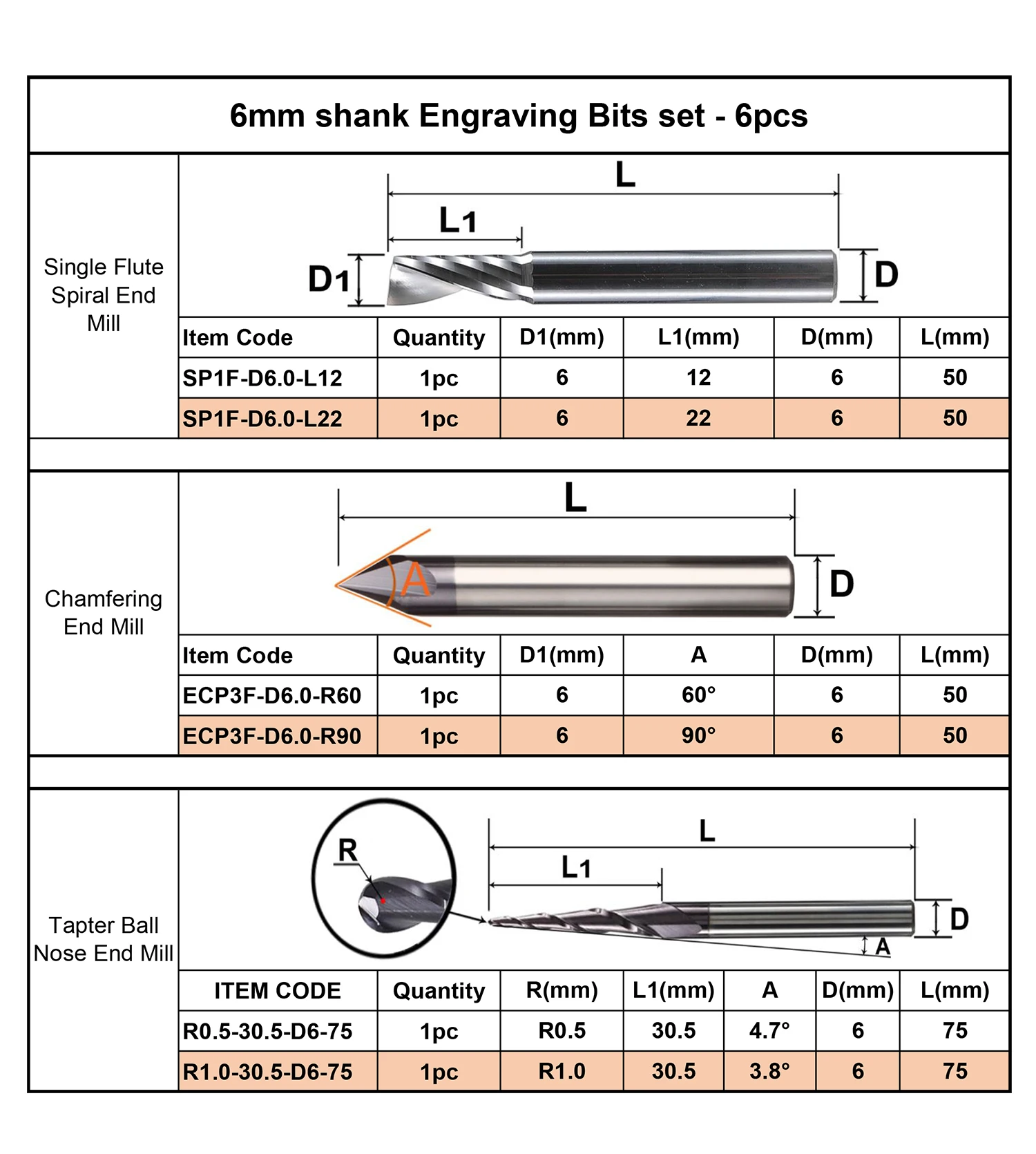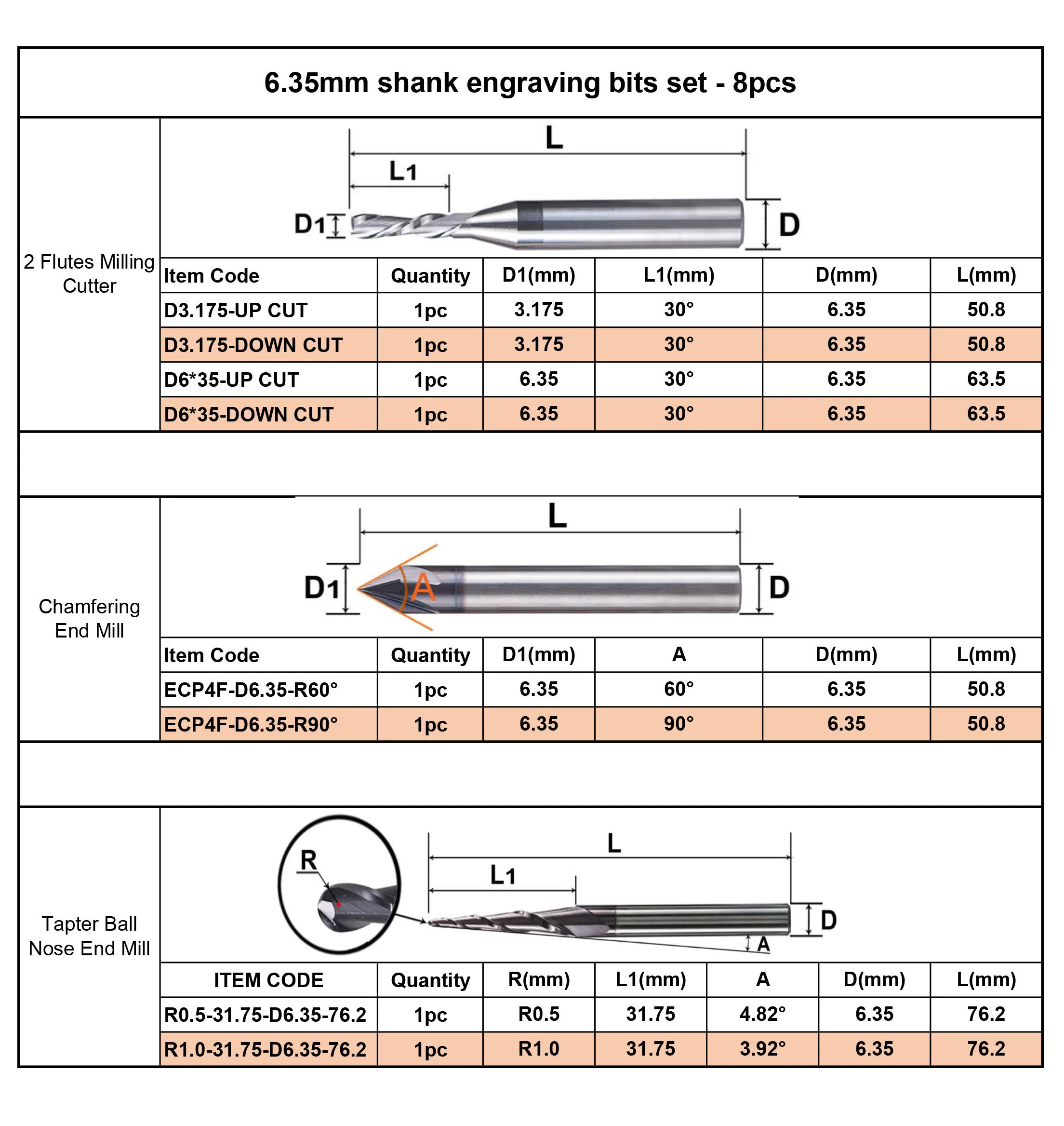 Набор фрез по дереву карбидные наконечники для гравировки мм, 3,175 мм, 6,35 мм, 6 мм