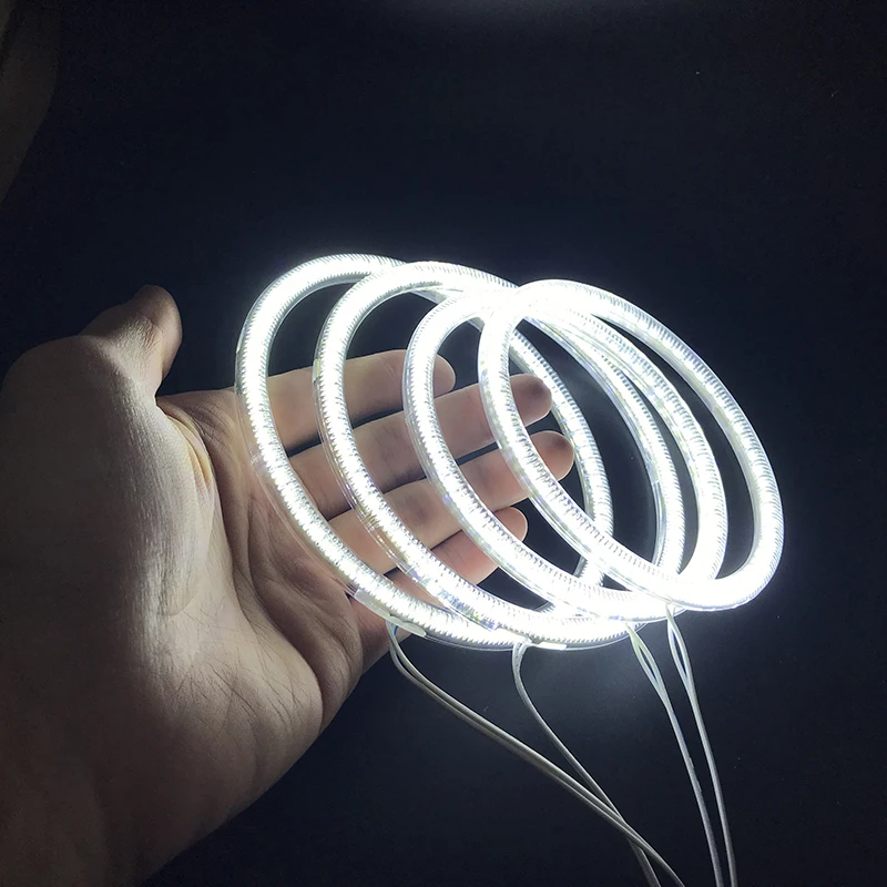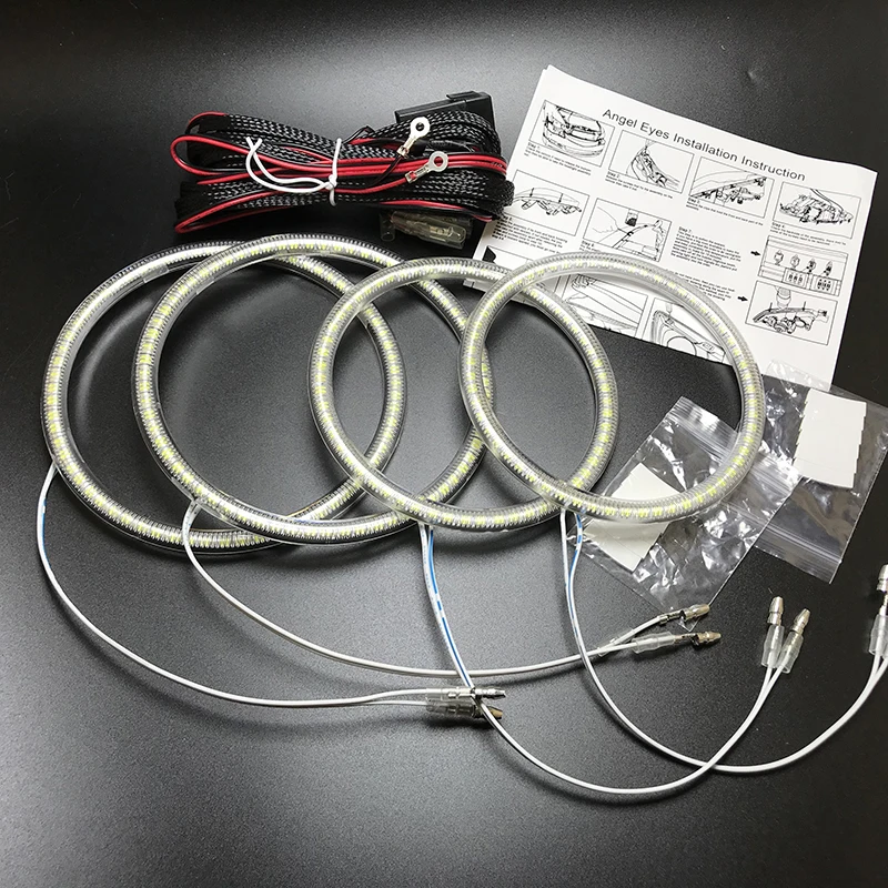 1, высокое качество SMD 3528 супер СВЕТОДИОДНЫЙ индикатор яркости 2, используется для фар автомобиля-маркер-ангельские глазки 3, всего 4 кольца или 2 кольца для ближнего и дальнего света; 4, агрессивный, но чистый и стильный светодиодный светильник. Идеально подходит для вашего биммера, если вы приобрели стандартную базовую посылка, но хотите обновить свой автомобиль до более роскошного вида.Характеристика: