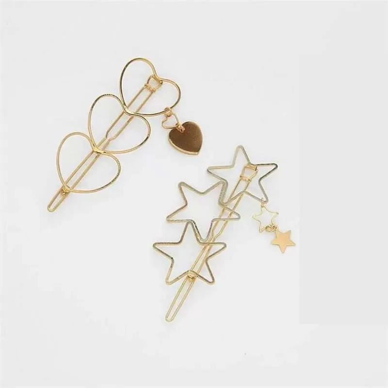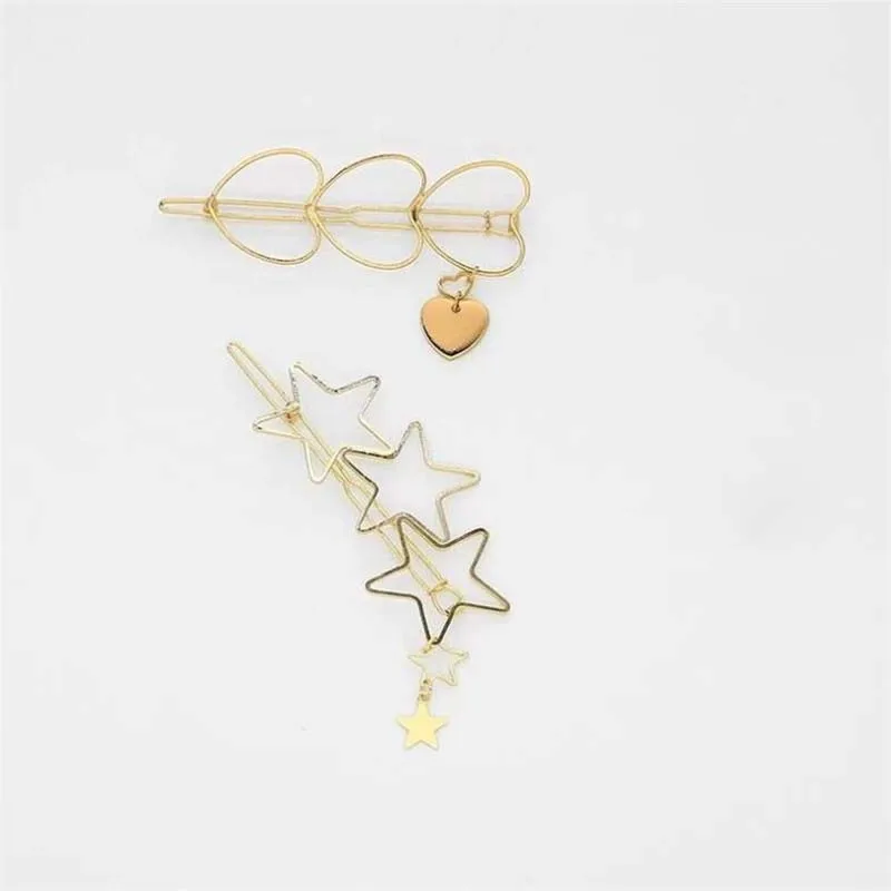 Заколка для волос с подвеской в виде сердца и звезды, женская заколка для волос, свадебные полые золотые заколки, головной убор, модные аксессуары