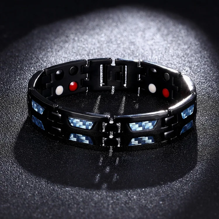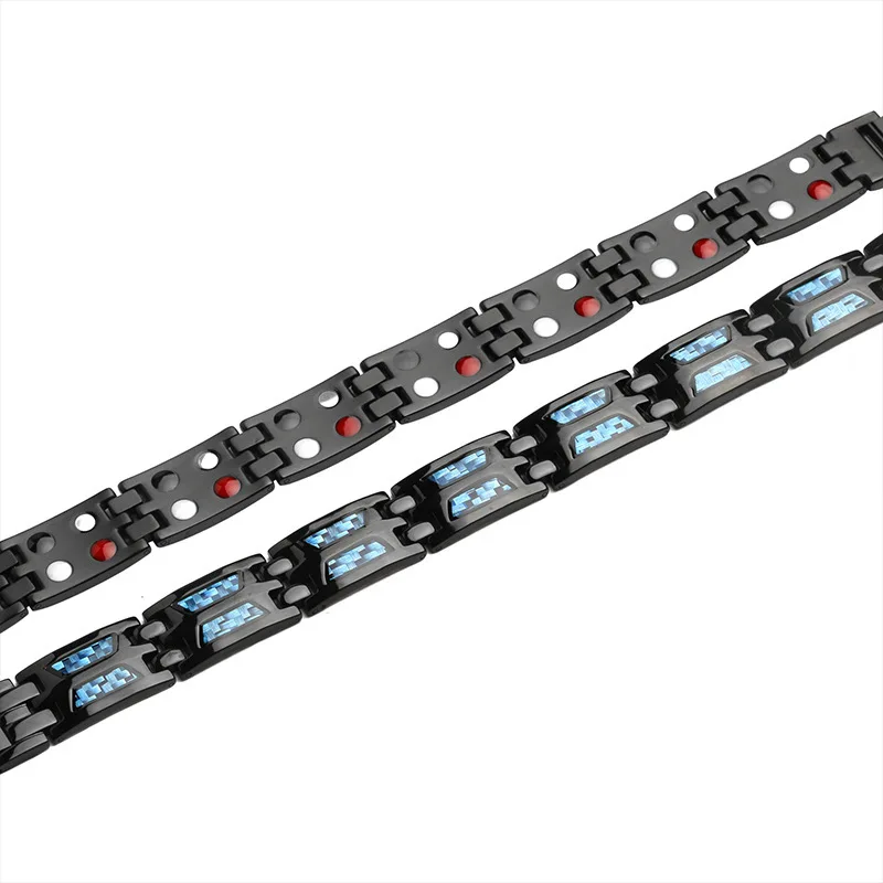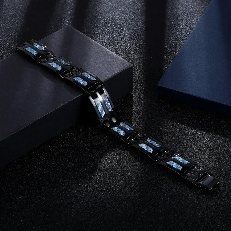 Черный магнитный браслет для мужчин, нержавеющая сталь, ручная цепочка, Панк ID браслеты, синий, углеродное волокно, магнит, браслеты для здоровья