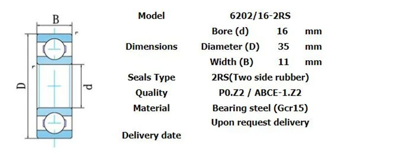 Номер модели6202 -16 2RS 6202 /16 -2RS 6202