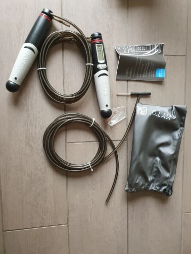 Скакалку пока не опробовала. Электроника работает, есть инструкция на разных языках, в том числе и на русском. Доставка быстрая, заказ оформила 13/11, получила в Париже 28/11. Брала на подарок, упаковка отличная, ничего не помято ! Спасибо продавцу за отличный сервис и хороший товар!