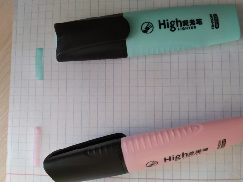 Маркер пришло через 1,5 месяца. Цвет один в один как на картинке, очень нежный, хороший, с обратной стороны листа маркер не просвечивается. Сколько прослужит не знаю, но однозначно денег своих стоит. Всем кто хочет нежные текстовыделители однозначно советую.