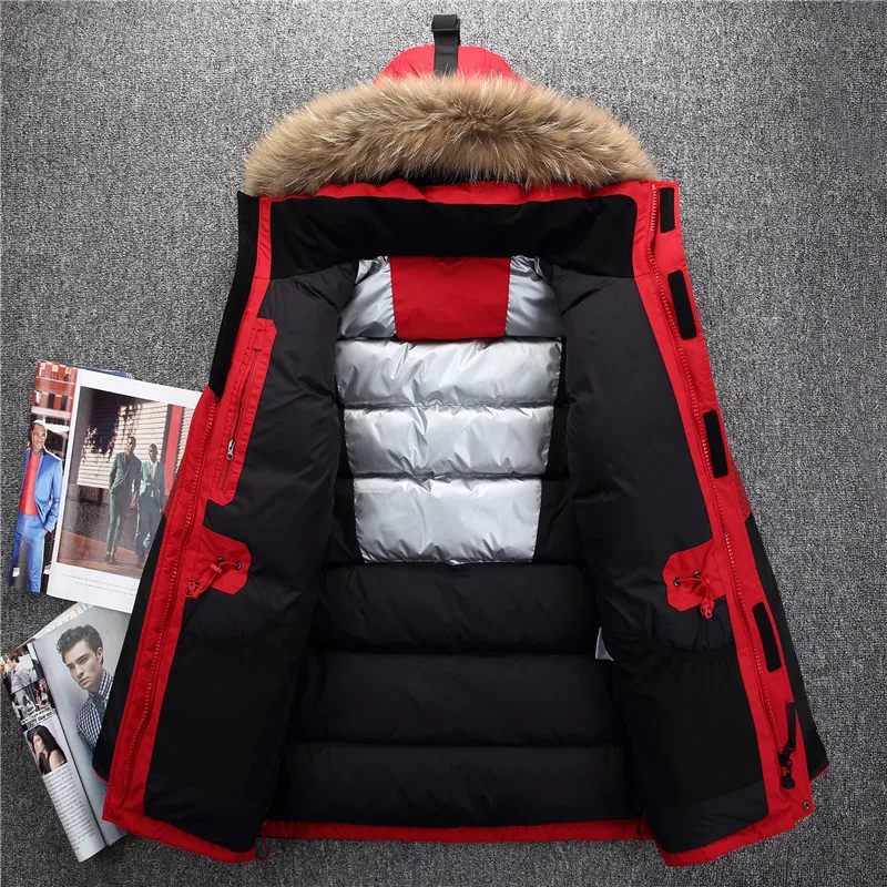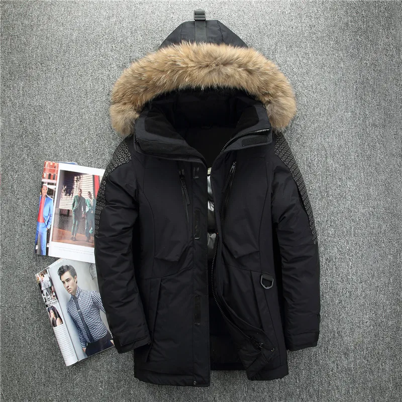 -40 градусов морозостойкий Россия зимняя куртка для мужчин высокое качество натуральный мех воротник толстый теплый белый утиный пух мужские зимние пальто