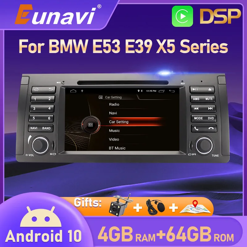 Eunavi DSP 4G+64G Android 10 Car Radio GPS For BMW E53 E39 X5 Series Multimedia Video Player Stereo WIFI Navigation 1 Din DVD