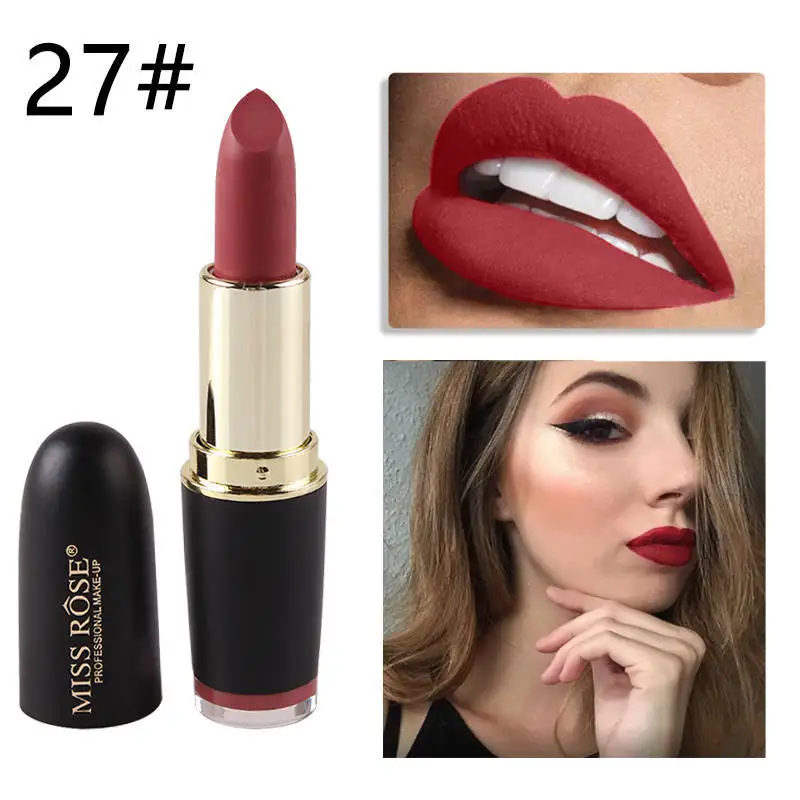 Новая матовая водостойкая помада MISS ROSE, 18 цветов, сексуальные красные и коричневые пигменты, для макияжа и красивых губ