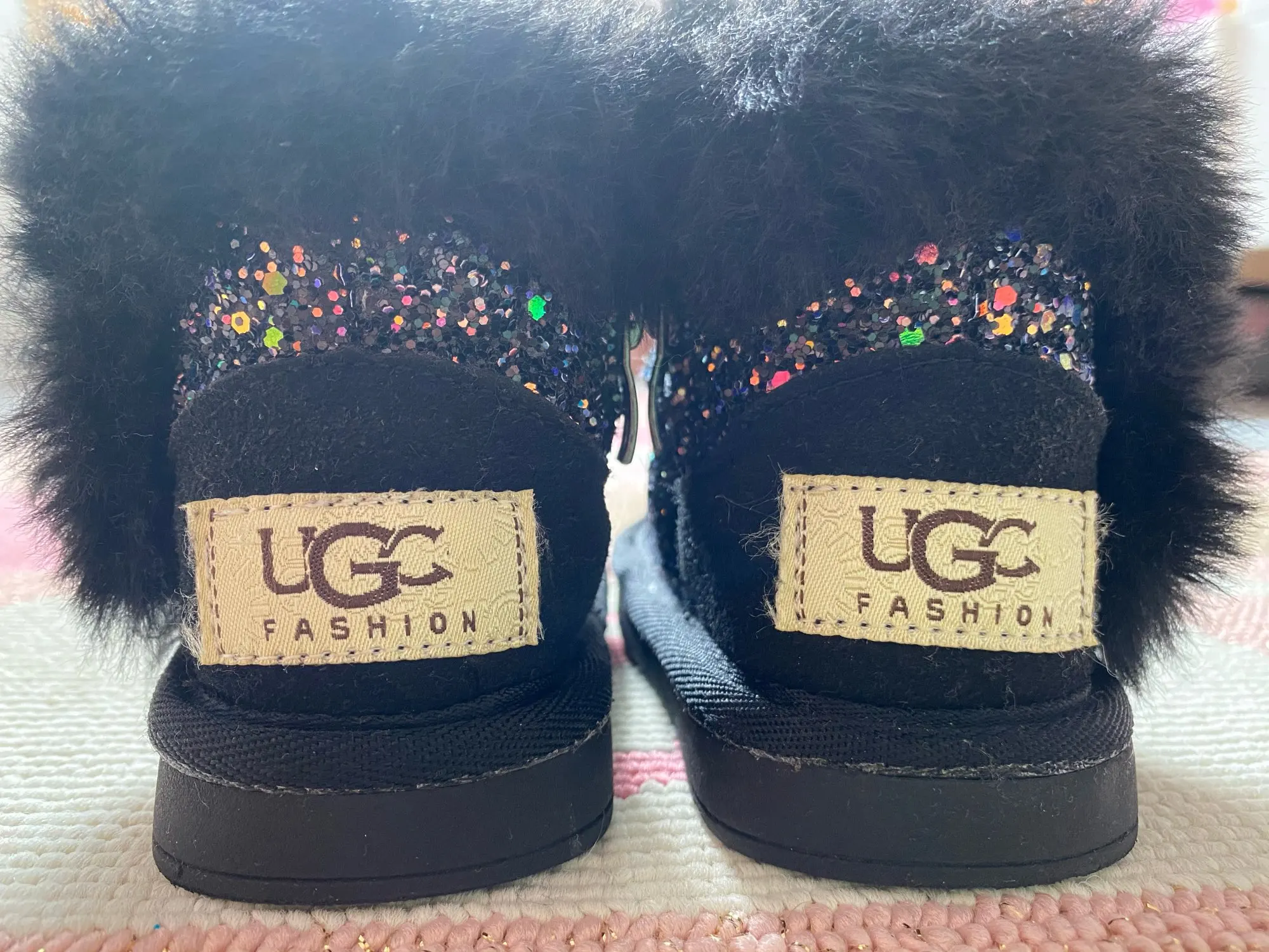 Ботинки такие же, как и на фотографиях, теплые, мягкие, блестящие, и подходят к размерам, но логотип сзади не такой, как на фотографиях покупателей, он не помещает УГК, он говорит что-то еще. Они прибыли быстро.