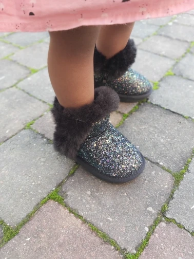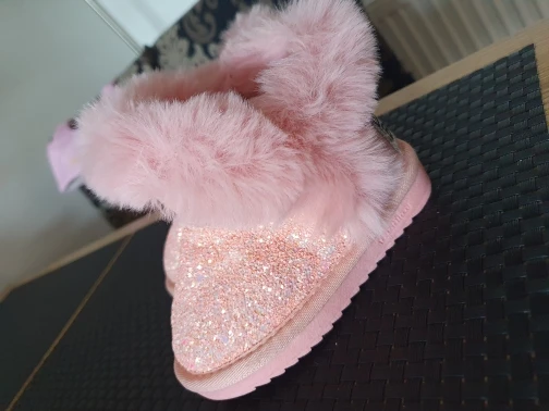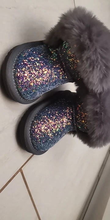 Оооочень класные ботинки!!! Блестят, теплые, сзади значек Уги. На ножке выглядят красиво. Взяла на размер больше и ели всунули ногу из за меха. Долго только очень шли. Заказывала летом, а получила в сеньтябре.