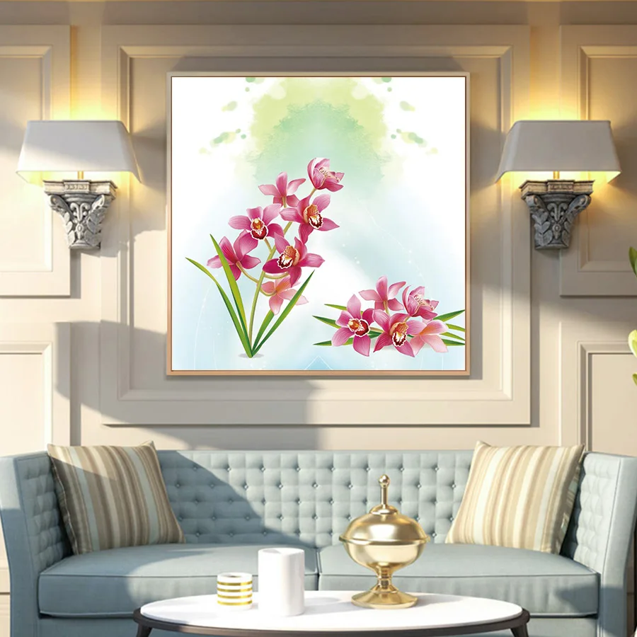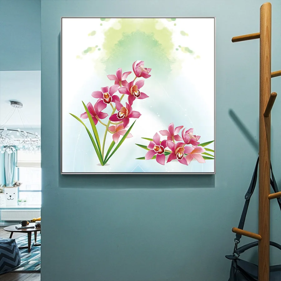 Наборы для вышивки крестиком, наборы для рукоделия 11CT, водорастворимые холщовые узоры 14CT, цветочный стиль, Cymbidium-NCMF199
