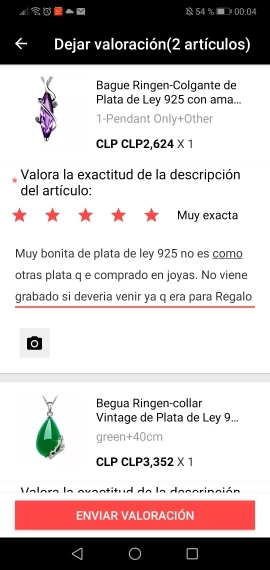 Красивое колье! Получил всего за 15 дней у двери моего дома. Выглядит великолепно на моем пальце, очень сильно блестит и имеет контраст 925 пробы с аутентичным серебром. Я рекомендую товар и продавцу, без сомнения. Большое вам спасибо!