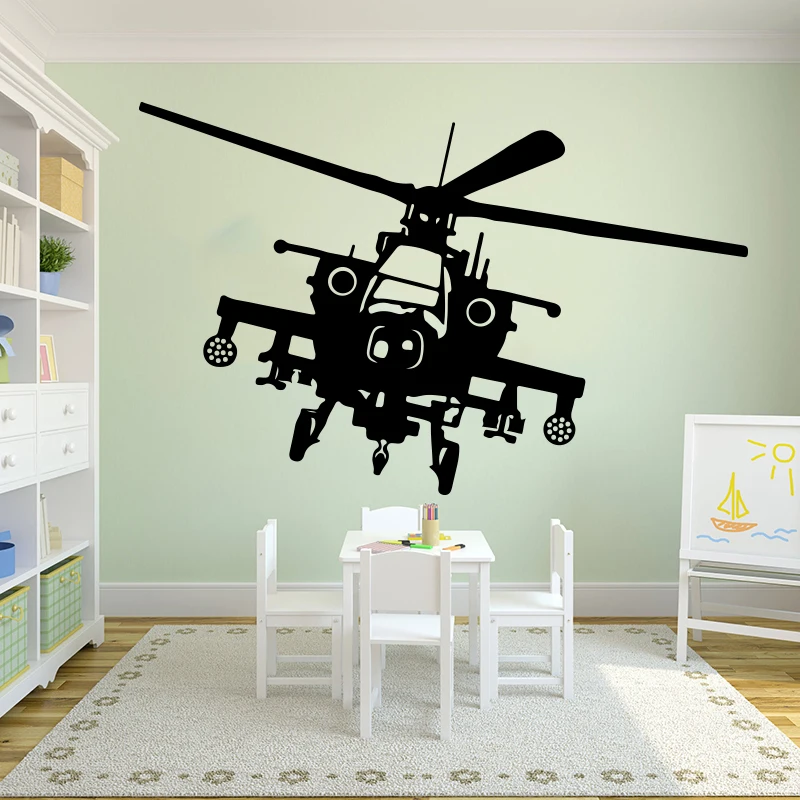 Большая вертолетная Наклейка на стену самолет для мальчиков, игровой зал, художественный вертолет, военный летающий боец, наклейка на стену, виниловый декор для детской комнаты