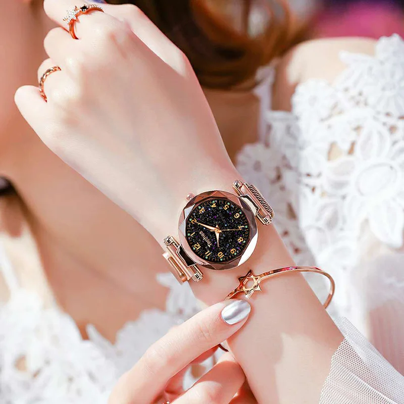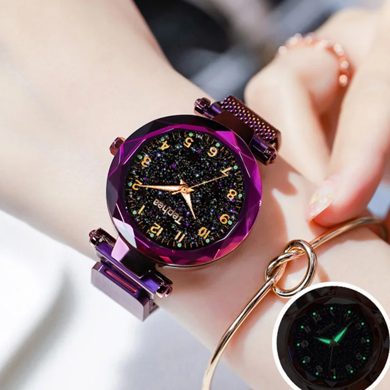 Часы наручные женские с магнитной застежкой, роскошные светящиеся водонепроницаемые с изображением звёздного неба