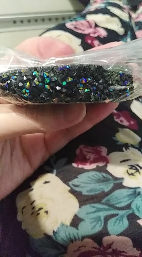 Не блестит, стразы почти всё на месте. Не сыпятся. Основа толстая.
