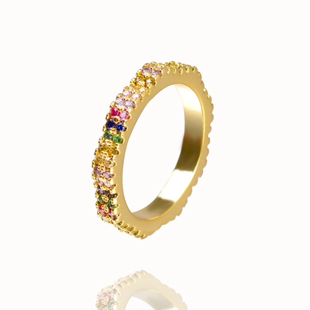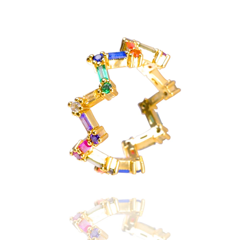 Осенний стиль Радужное Кольцо Золотое циркониевое женское кольцо роскошное регулируемое обручальное кольцо вечерние ювелирные изделия для женщин подарок