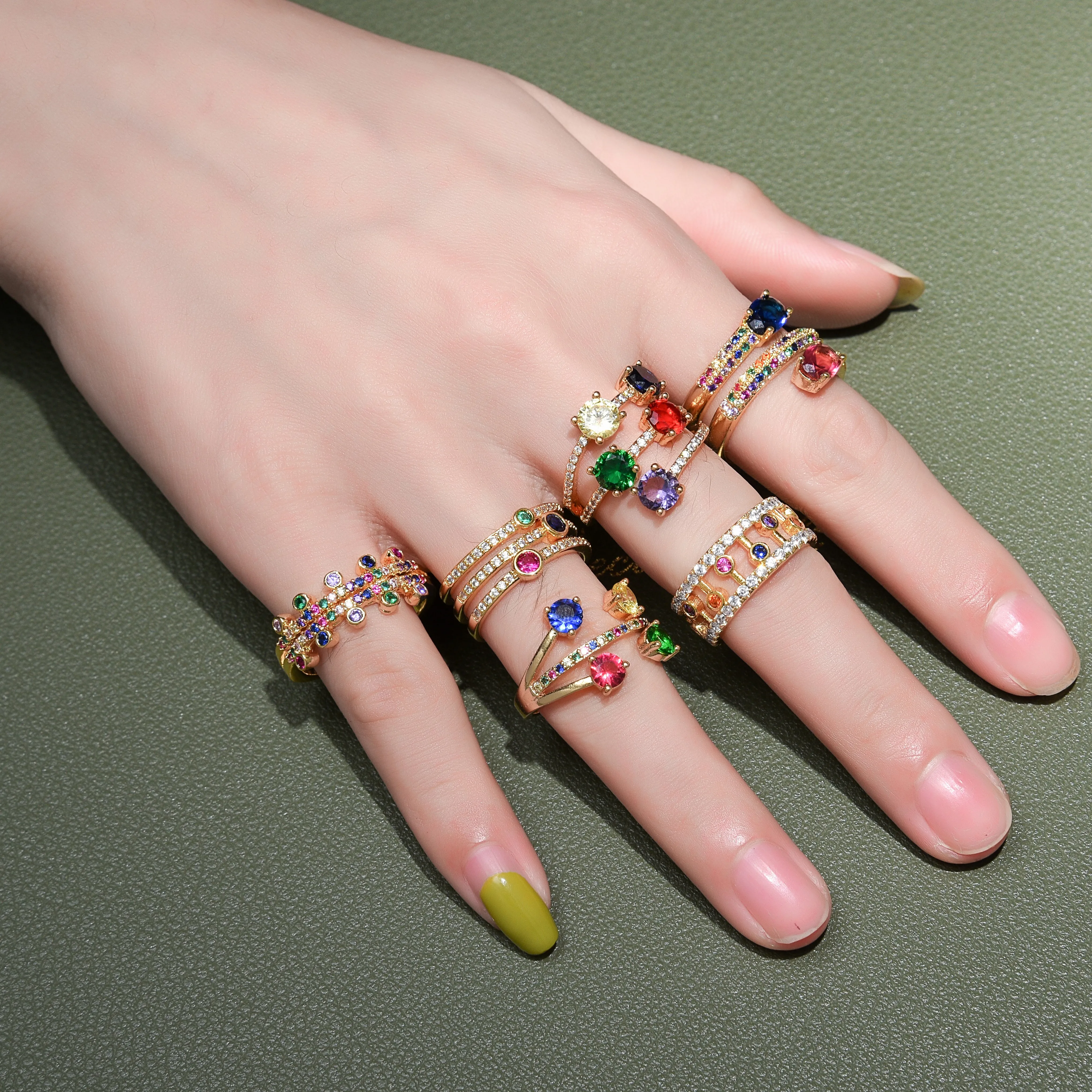 Осеннее стильное Радужное кольцо, женское кольцо с золотым цирконом, роскошное регулируемое обручальное кольцо, вечернее кольцо, ювелирные изделия для женщин, подарок