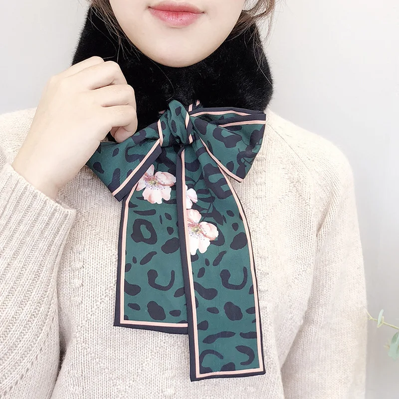 Зимний шарф 2021 новый дизайн меховой шарф Леопардовый шарф женский роскошный брендовый обтягивающий шелковый шарф женский шейный платок шарфы для дам