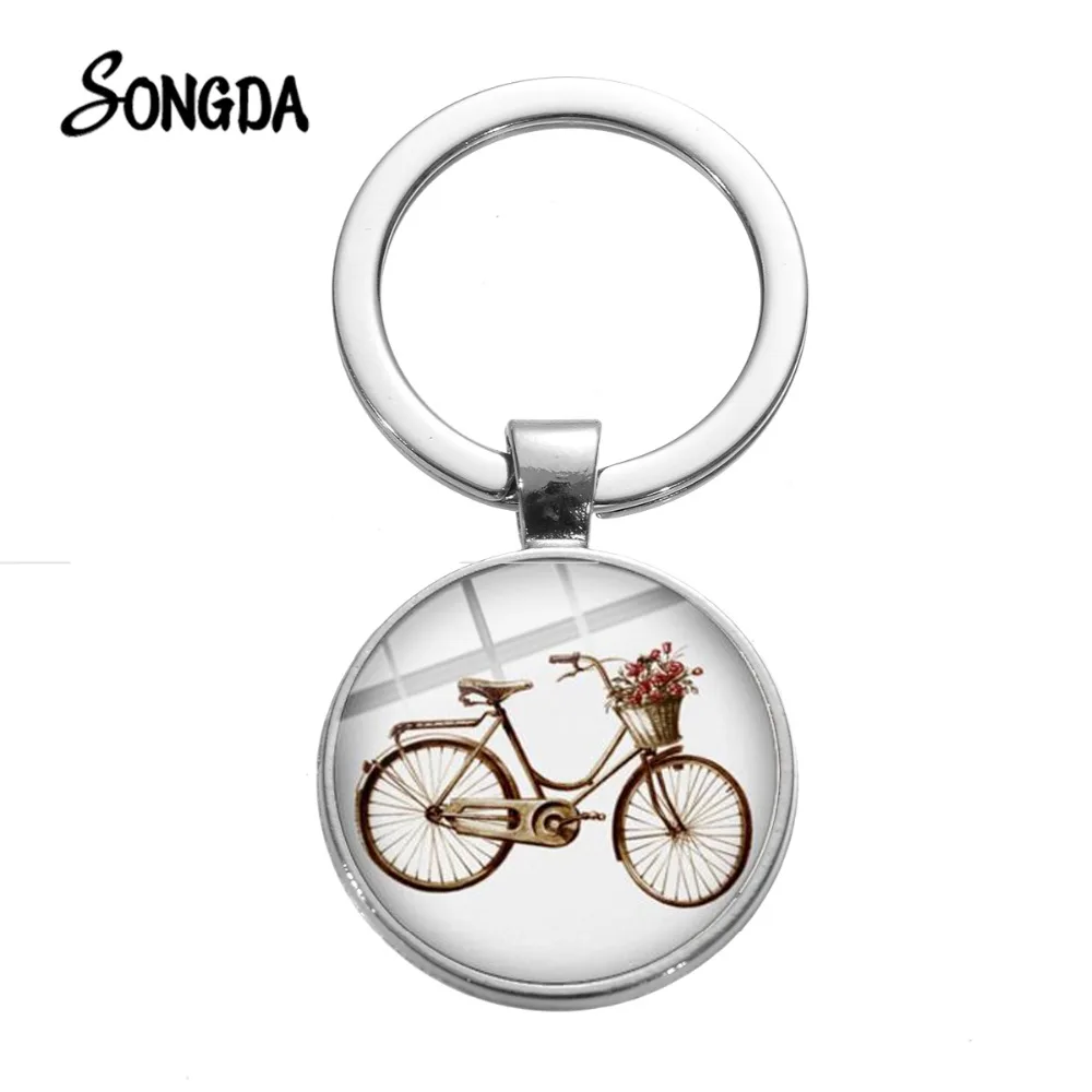 Винтажный велосипедный брелок повседневный спортивный велосипедный минималистичный стиль художественный брелок стеклянный круглый брелок Коллекция велосипедной серии