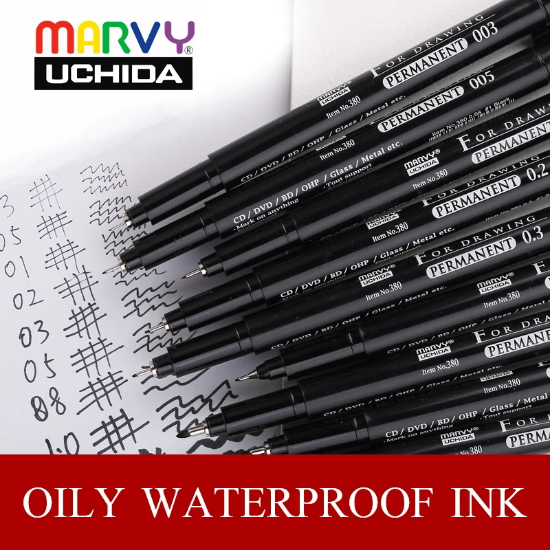 Ручка для рисования иглой Marvy, ручка с масляными чернилами 0030050.10.30.50. 0Кисть, водонепроницаемая живопись, искусственные чернила для рисования аниме