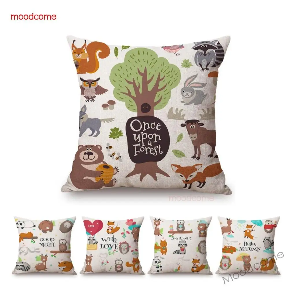 Чехол для детской диванной подушки, с изображением лесных животных,...