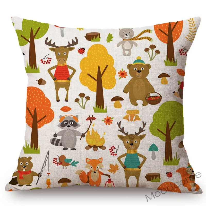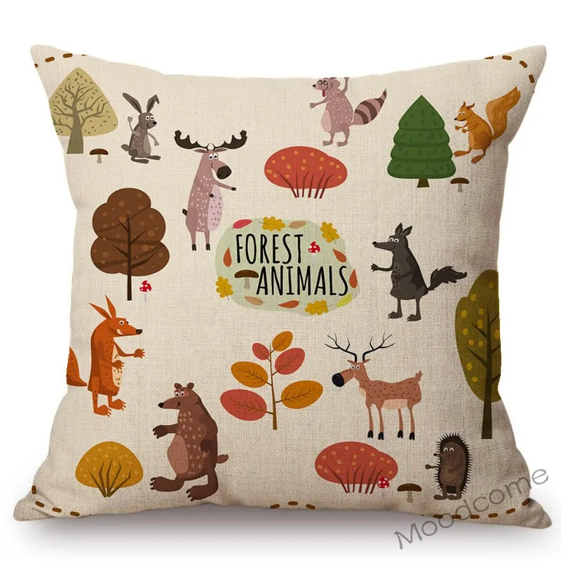 Симпатичный чехол для диванной подушки с изображением леса животног...