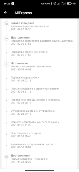 Посылка пришла на сортировочный пункт, по данным продавца, с опозданием на 7 дней. Почта России не торопилась с отправкой уведомления, поэтому пришлось заказ разыскивать в СDеке и на почте России. Получил его на почте России спустя ещё 3 дня. Блютуз приемник порадовал. Упаковка стандартная. Коробка мягкая, целая. Качество устройства отличное, быстро соединяется со смартфоном, звучание старого музыкального центра, подключенного к блютуз устройству через кабель "тюльпан" отличное. Товаром очень доволен.