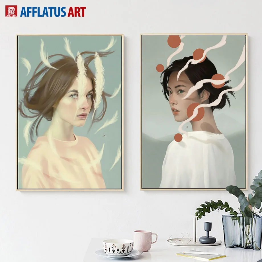 Настенные картины в скандинавском стиле с изображением девушек и же...