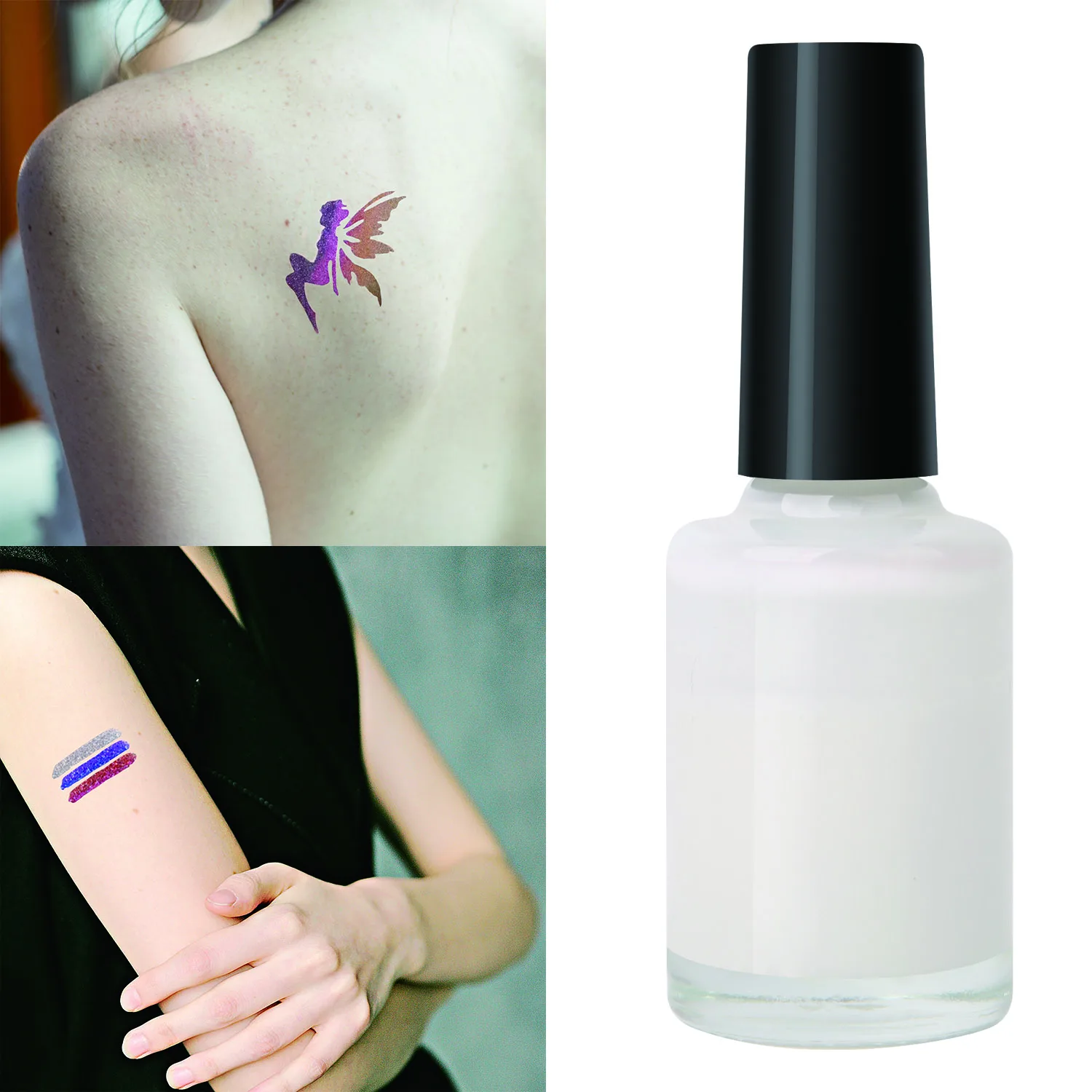 Описание: белый пластик тату-порошок уникален по цвету. Водонепроницаемость на 5-10 дней. (Не тереть при принятии ванны) вам не нужна Татуировка-пульверизатор, можно легко сделать флеш-тату всего за несколько шагов. Вы можете использовать руки, спину, лицо в любом месте. Цвет: белый Описание: 1. Форма татуировки соединяется с кожей; 2. Тоньше при нанесении клея. 3. После нанесения клея удалите шаблон. 4 подождите некоторое время, клей становится прозрачным, затем нанесите пудру и равномерно нанесите небольшим дыханием. 5. Используйте дыхание, чтобы удалить излишки вспышки пыли. Срок годности: 6 лет Состав: Пеногаситель, вознаградитель, вода, бутират