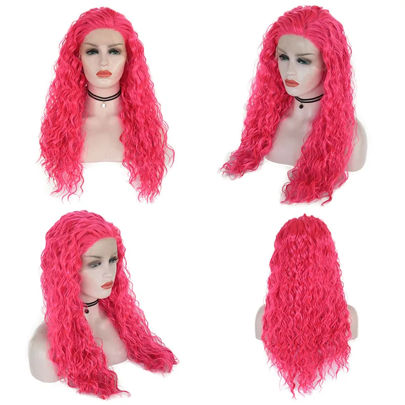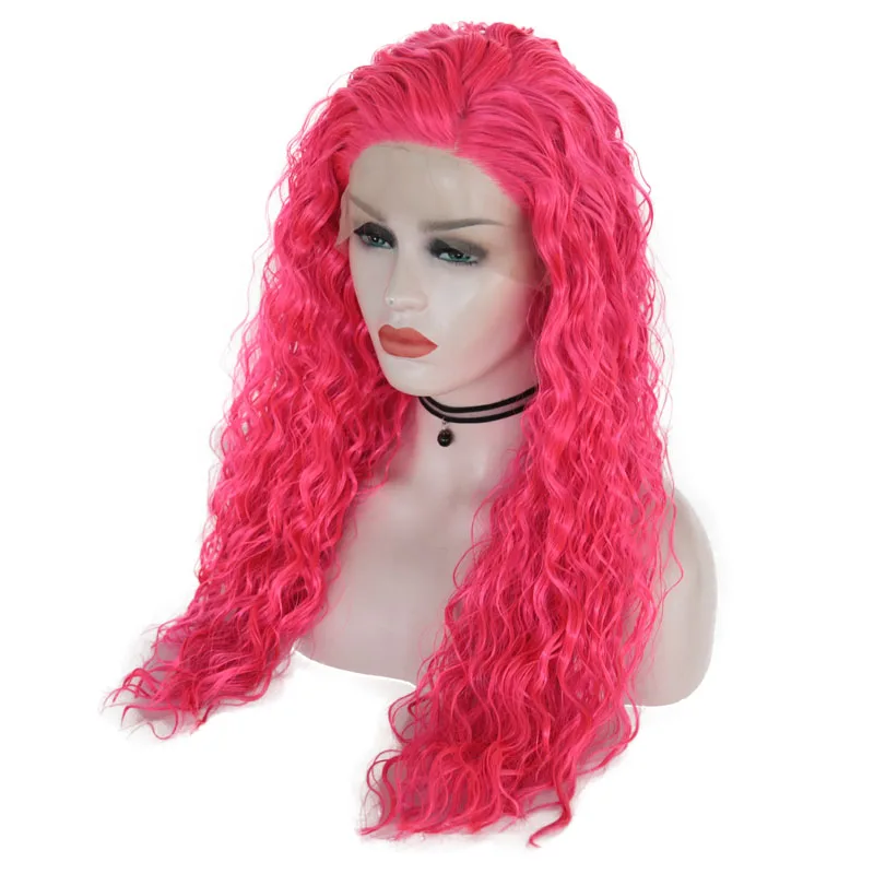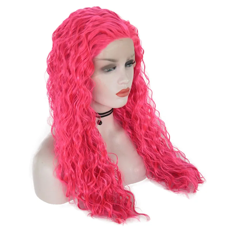 Длинный парик на сетке JOY BEAUTY, термостойкие кудрявые волосы 24 дюйма, розово-красного цвета, для ежедневного макияжа, синтетические передние парики на сетке