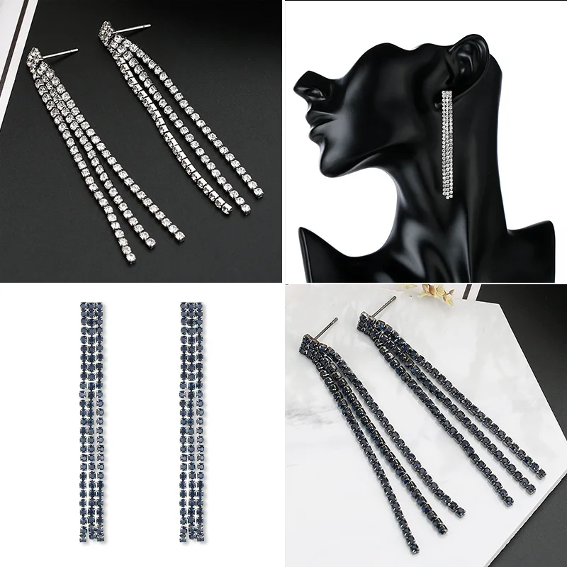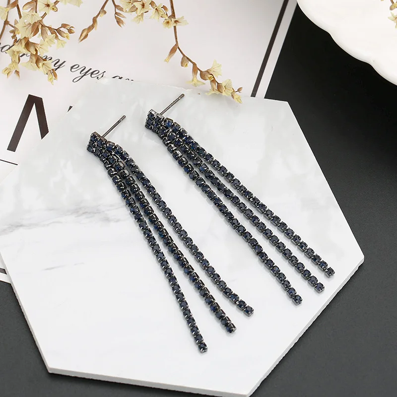 Женские серьги-гвоздики с кисточками, длиной 6,5 см, из циркона