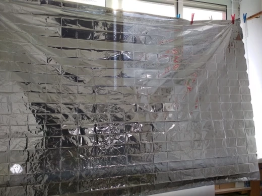 Отличная вещь! Я использую для защиты помещения от перегрева от солнца, вешаю на окна. Только учтите что при попадании влаги может сойти амальгама ( блестящий слой), лучше чтобы эта фольга не прислонялась к стеклу. Хорошо работает как термос. Купила уже на все окна, летом будет не жарко.Заказала уже в четвертый раз. Спасибо большое продавцу!