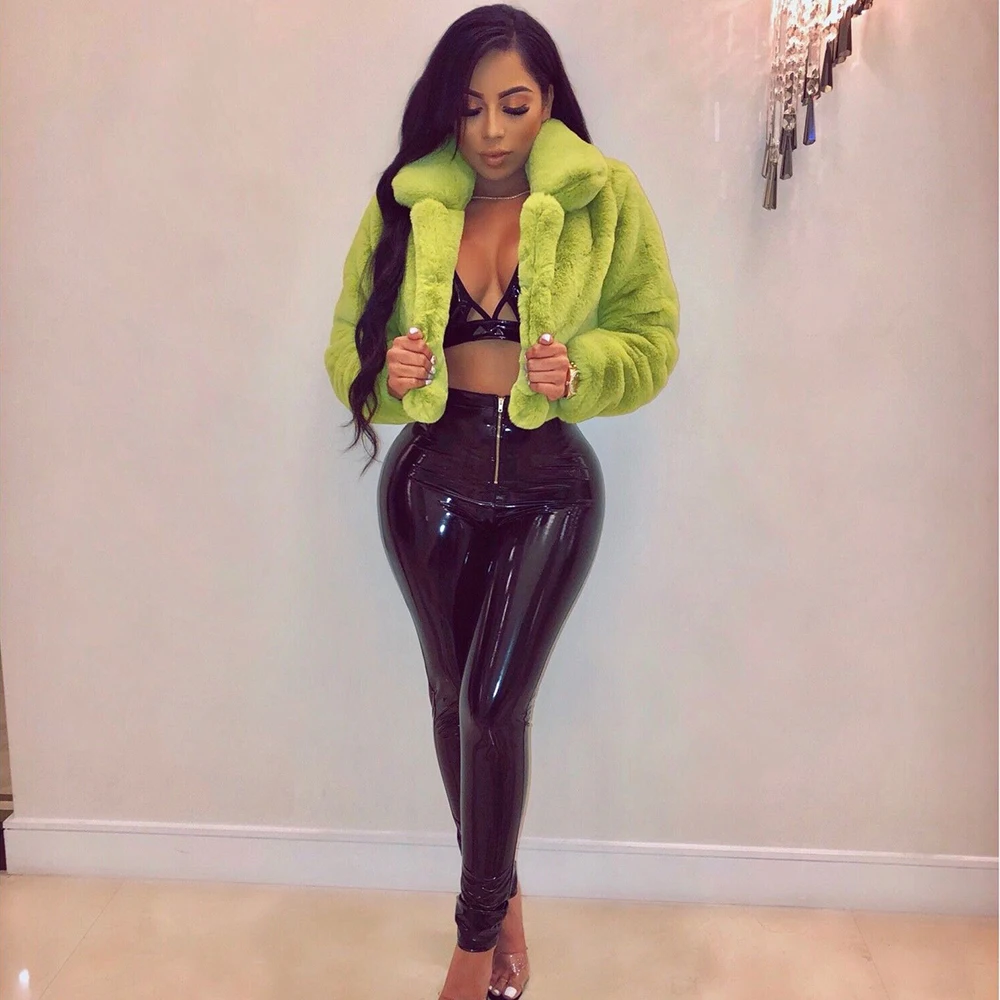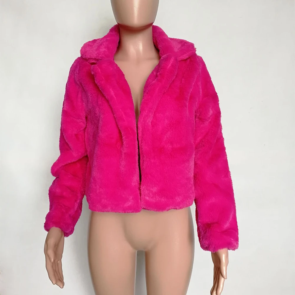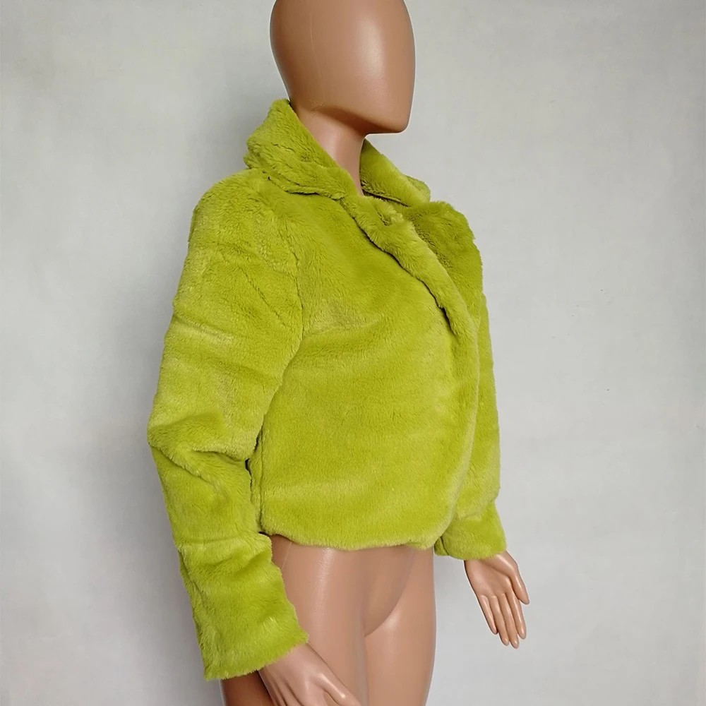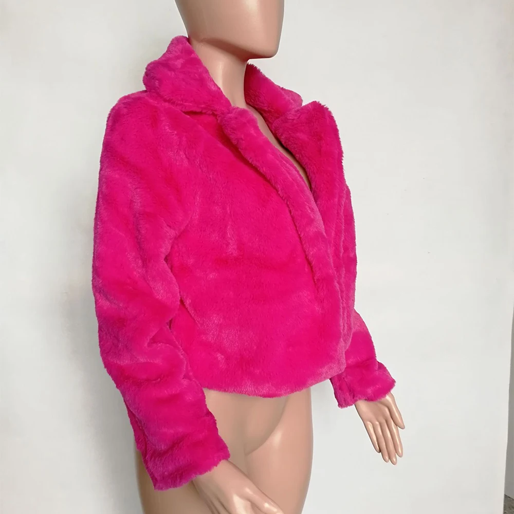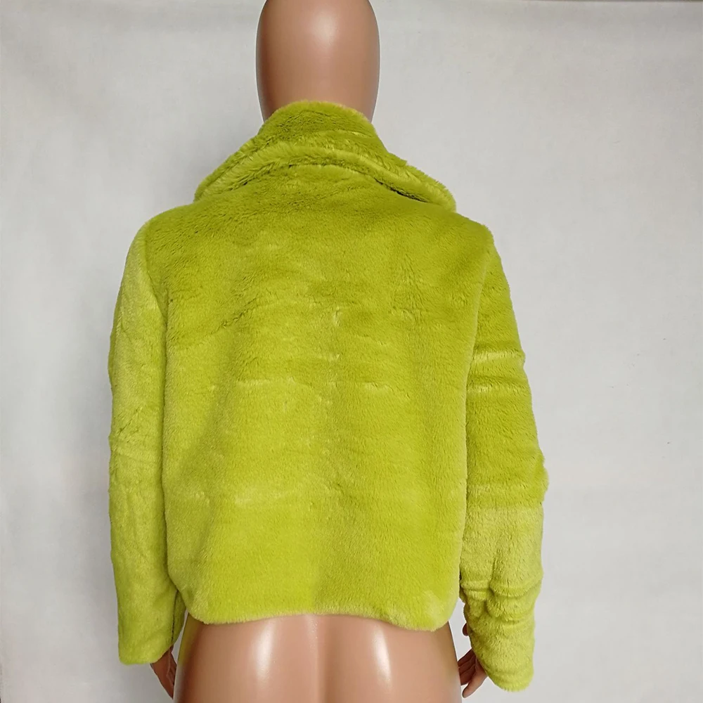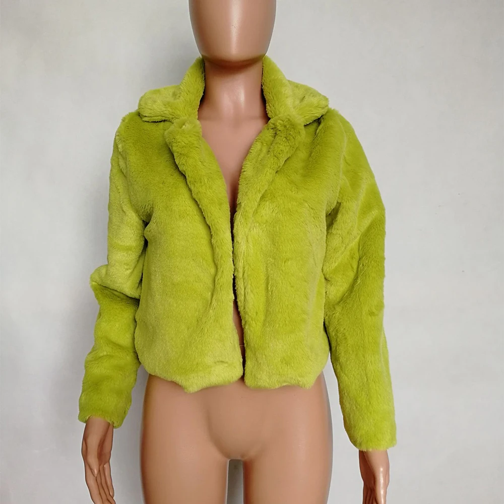 Женское зимнее пальто из искусственного меха с длинным рукавом, однотонная шерстяная короткая куртка, Женская Клубная уличная одежда, элегантное плотное теплое пальто, верхняя одежда