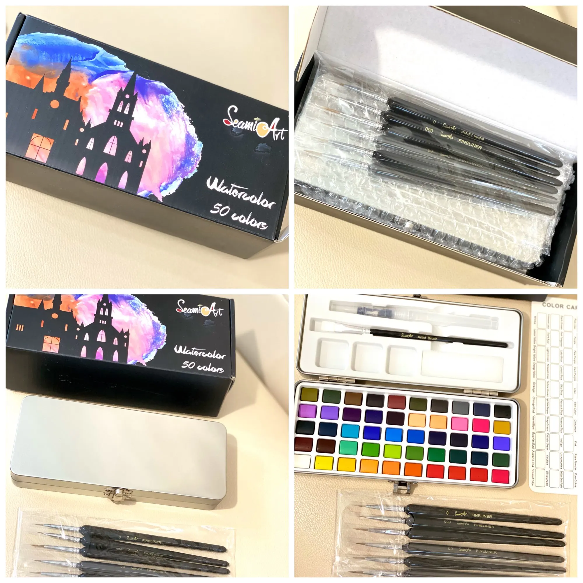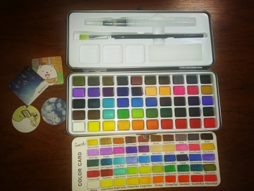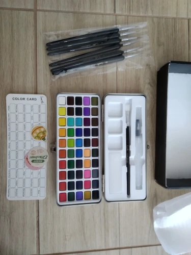 Очень доволен качеством оттенков, очень пигментирован и хорошо работает при разбавлении. Коробка включает в себя щетку и водяную щетку, и хорошее качество. Я очень доволен заказом, буду рекомендовать. Доставка была быстрой и без каких-либо неудобства. Спасибо продавцу!