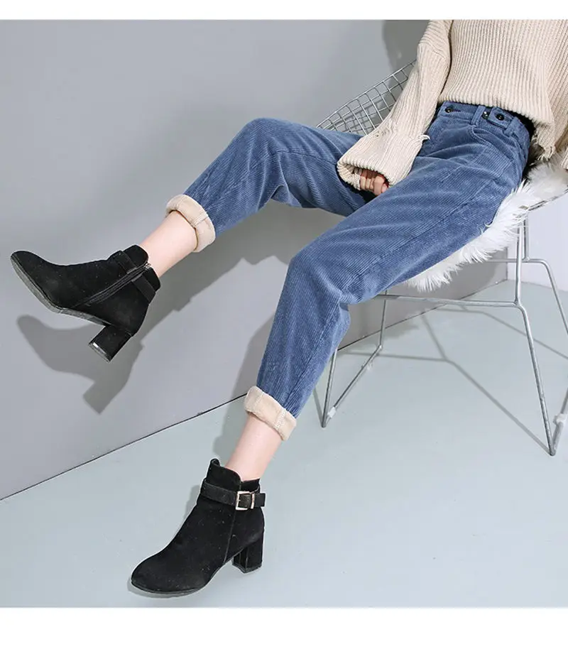 Леггинсы женские вельветовые, черные, с высокой талией, свободные, с начесом, на осеньзиму, C5803