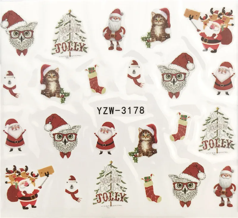 Наклейки для ногтей, новогодние, ползунки, татуировки, рождественск...
