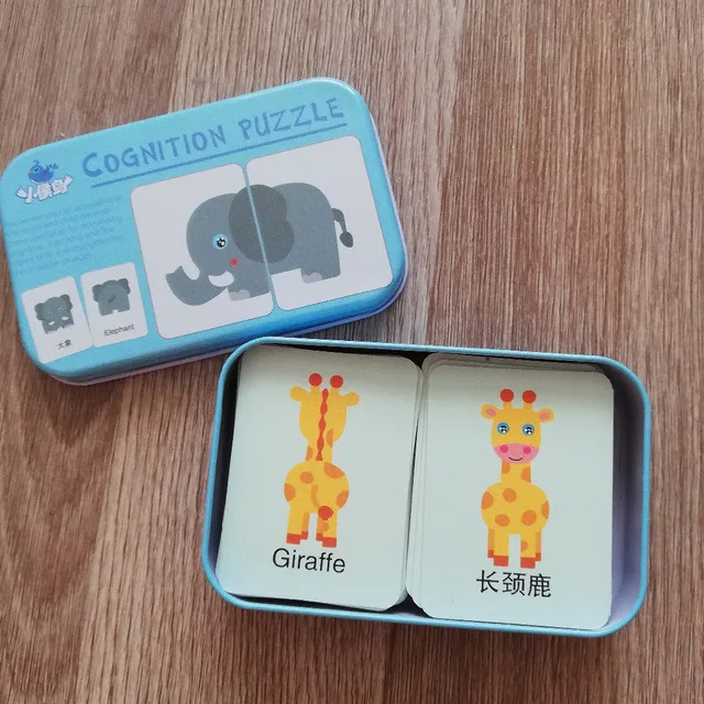 Детские Обучающие пазлы, игрушки для малышей, железная коробка, карты, совпадающая игра, когнитивные карточки, автомобиль, фрукты, животные, жизнь, пазл