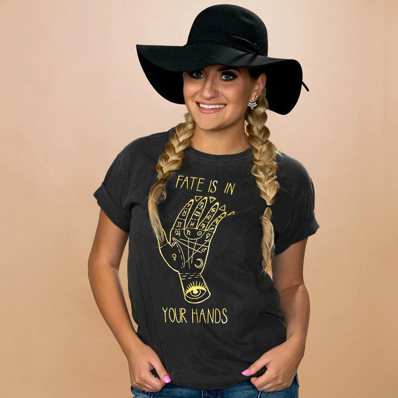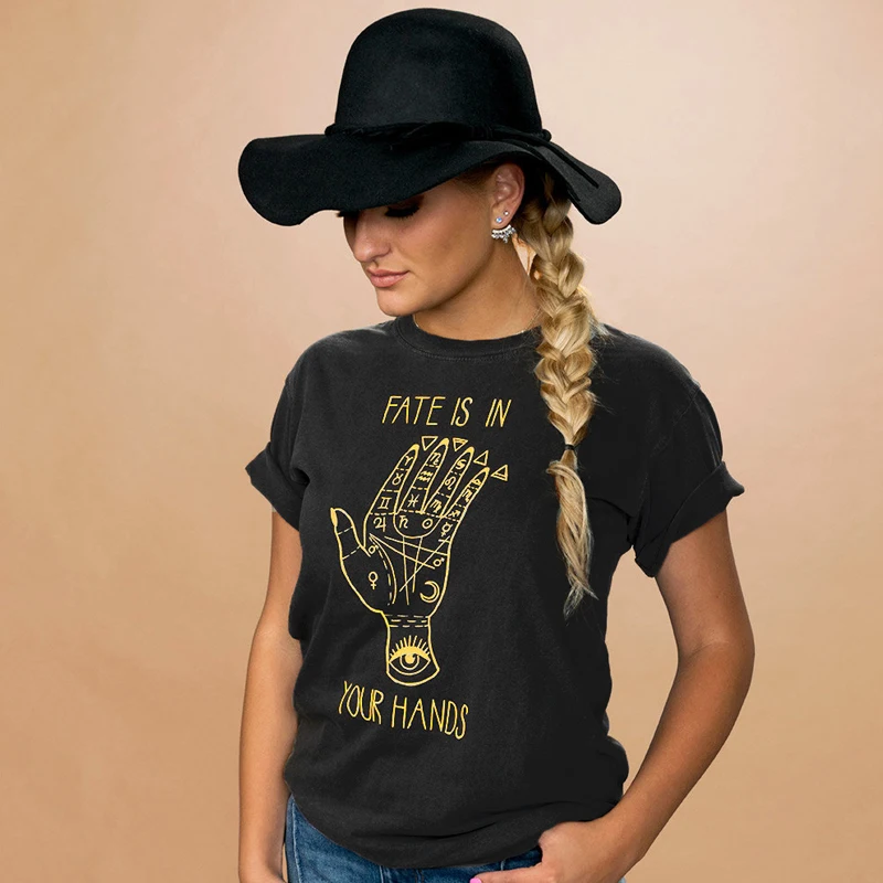 Черная футболка с рисунком Fate Is In Your Hands, модная женская футболка с круглым вырезом, лозунг Tumblr, Минималистичная летняя забавная футболка из чистого хлопка