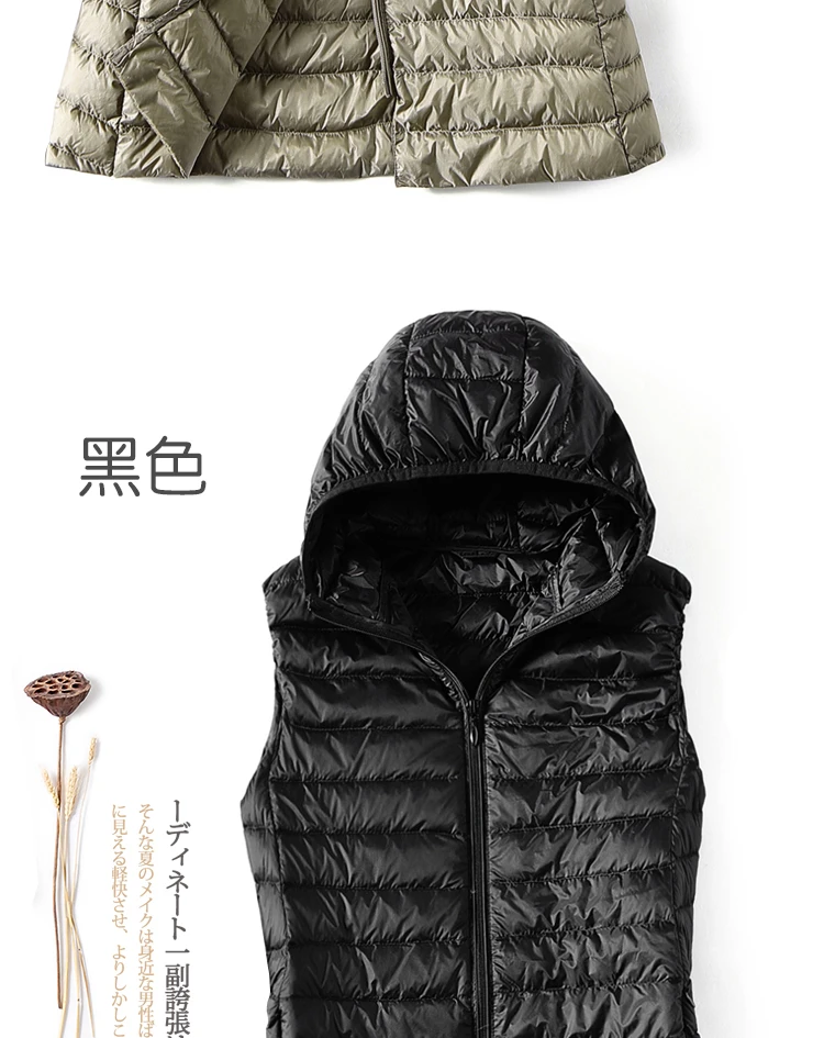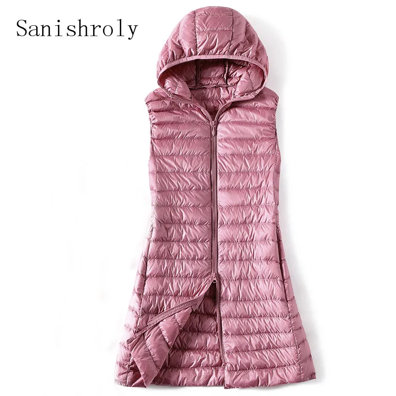 Размера плюс 4XL женское платье без рукавов с капюшоном пальто осень-зима средней длины ультра светильник пуховой жилет женский пуховик на утином пуху парка-безрукавка Топы