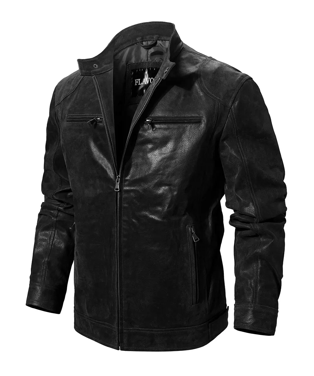 Отправляли долго, в последний день дали номер, потом через несколько дней номер сменили. Качество кожи и строчек очень хорошее, но пошив от фото далёк. Куртка прямая, подмышками широкая, на мотоциклетную не похожа совсем. Если животик отрастить, тогда будет облегать по бокам.