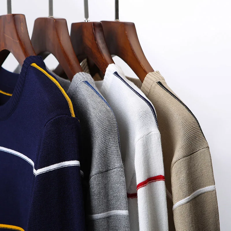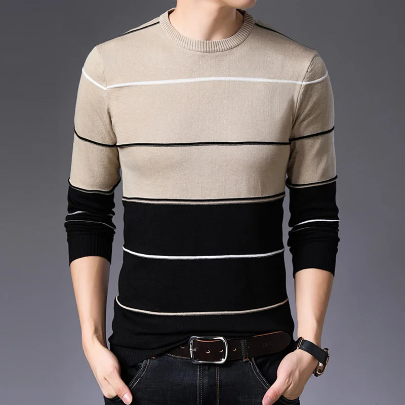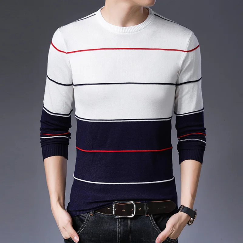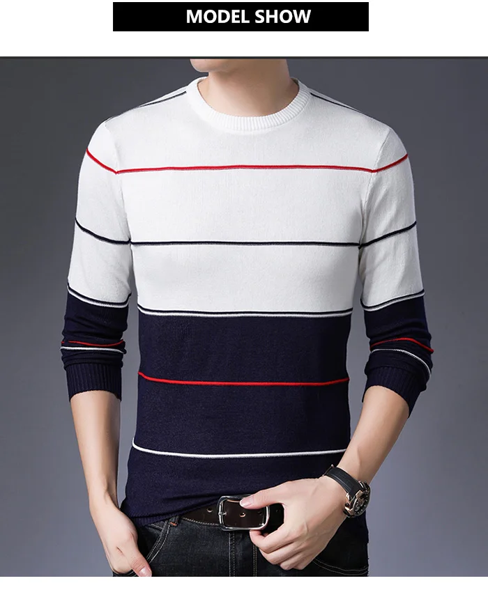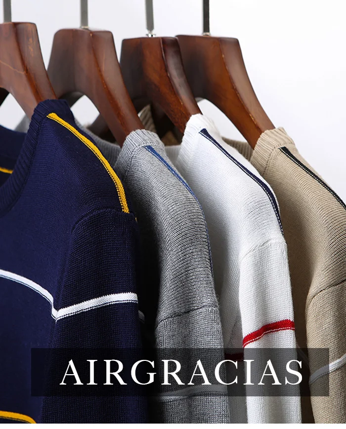 Мужской шерстяной свитер AIRGRACIAS, приталенный трикотажный пуловер в полоску, повседневная одежда для осени, 2019